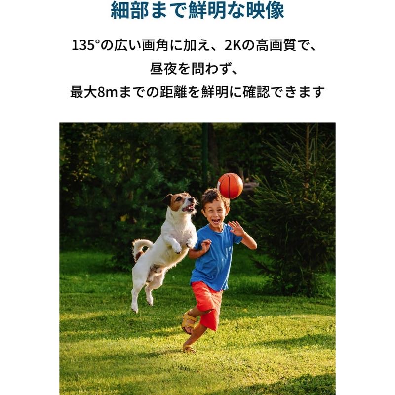 135°の広い画角に加え、2Kの高画質で、昼夜を問わず、最大8mまでの距離を鮮明に確認できます。AIカメラ搭載