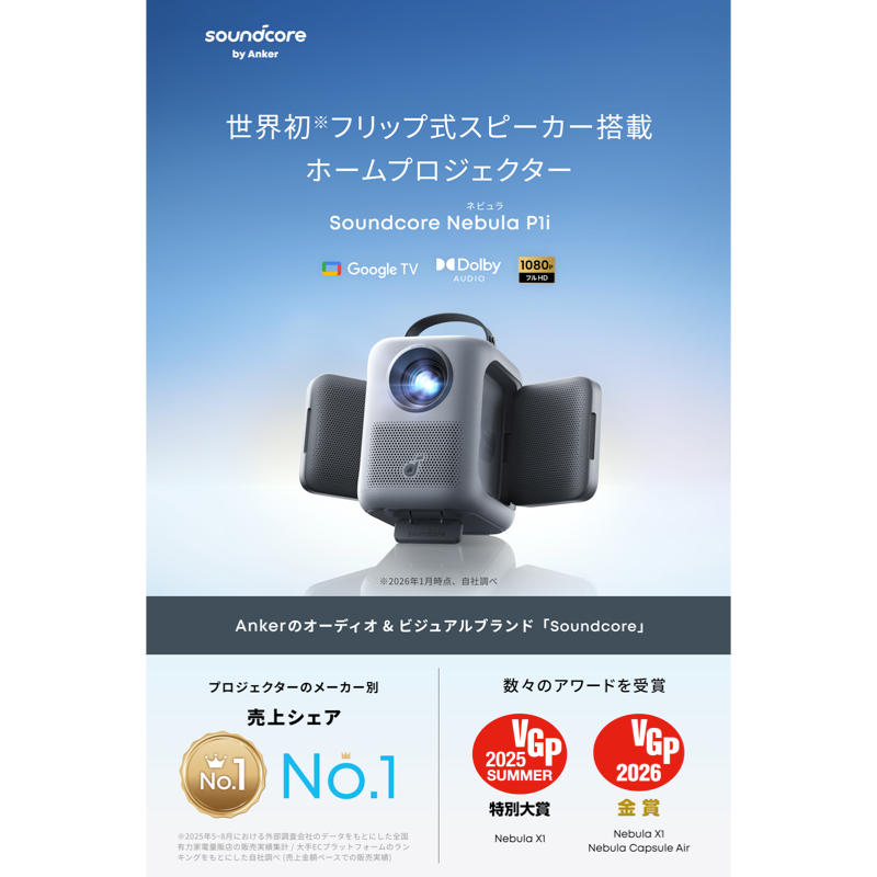 世界初※フリップ式スピーカー搭載ホームプロジェクター