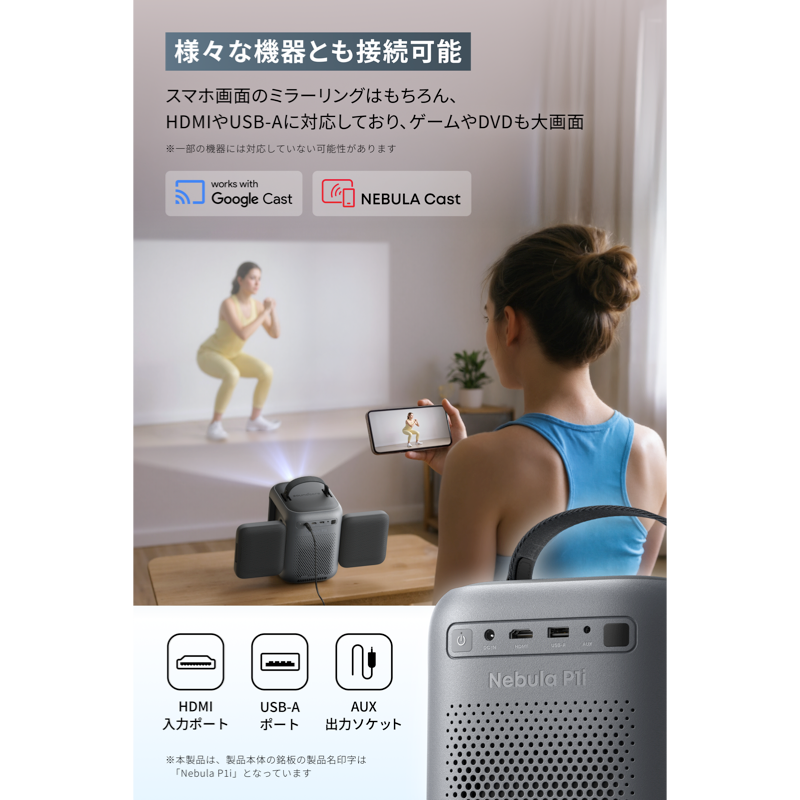 ※プロジェクター本体にはバッテリーを搭載しておりません