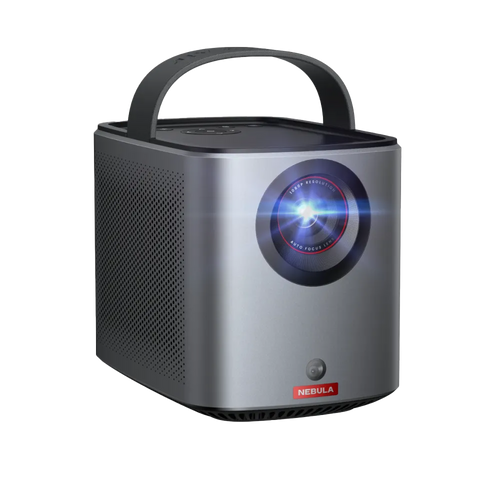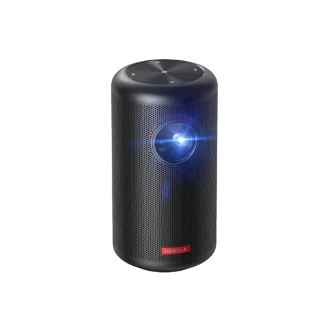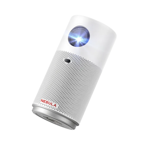 片手に収まるコンパクトサイズで持ち運びも簡単。便利な補正機能で、どんな場所でも投影できるから、テントの中で映像を楽しむことも。