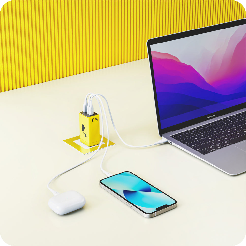 合計最大120W出力が可能でMacBook ProなどのハイスペックPCにも急速充電