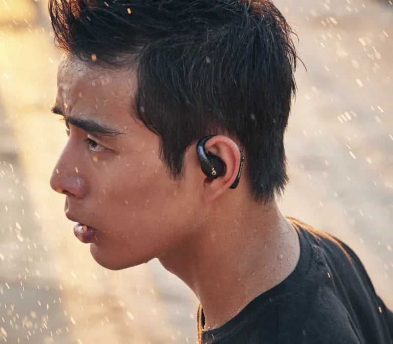 外れにくく蒸れにくいIP55の防塵・防水規格に対応しているため、汗や大雨、汚れをガードし、スポーツやアウトドアの利用でも安心。着脱可能なバンドも付属しているので、激しいスポーツを行う方でも、しっかりとした装着感を実感いただけます。