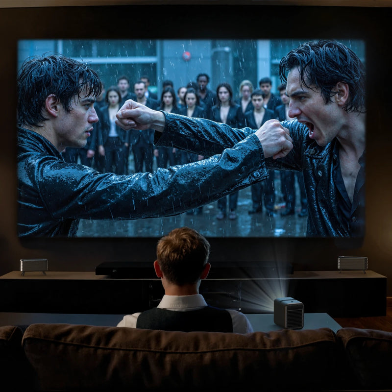スペースを取らない片手に収まるコンパクトサイズなモバイルプロジェクターなら、収納スペースに悩むことなく、自由にインテリアをお楽しみいただけます。