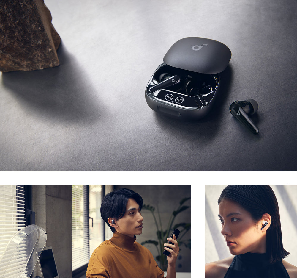 ライフスタイルに合わせてイヤホンを選ぶのも一つの重要なポイントです。Soundcoreは豊富なカラーバリエーションと複数のイヤホン形状を兼ね備えた、幅広いラインアップを揃えております。