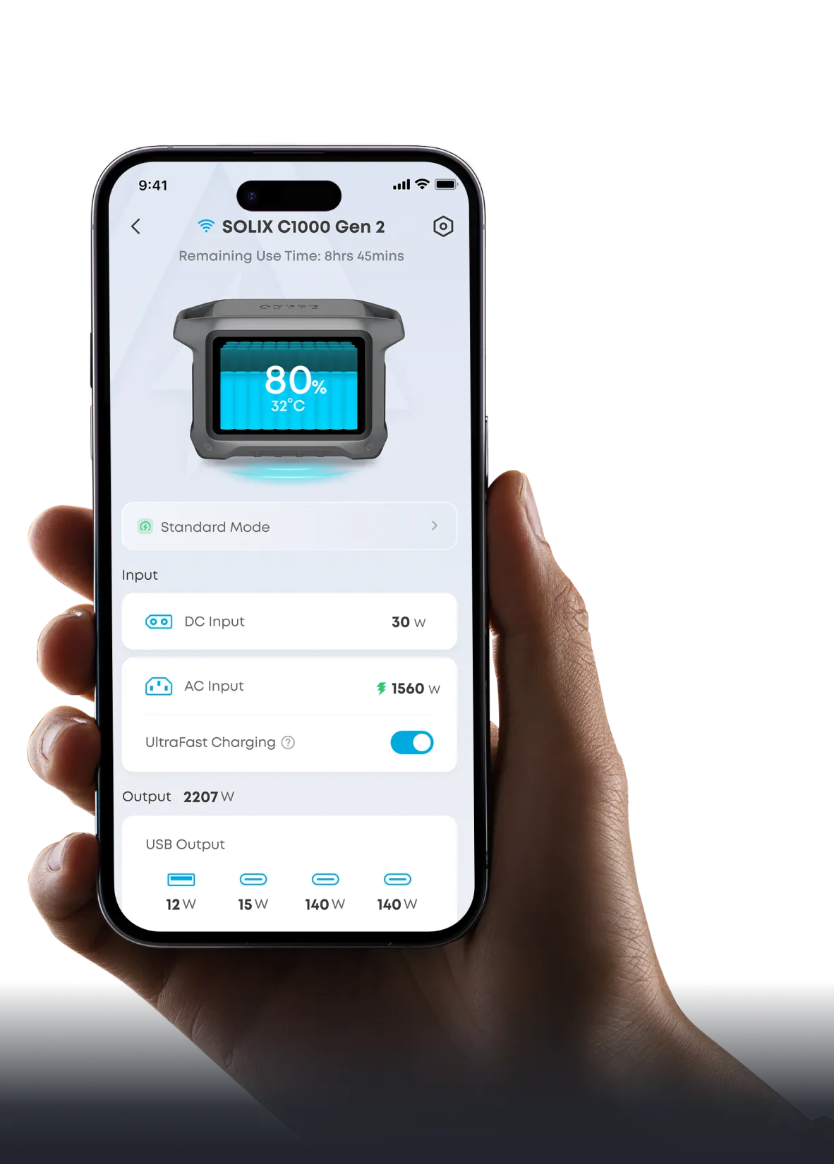 定格出力は家庭用コンセントと以上の1550Wを実現。スマホやノートパソコンはもちろん、電気ケトルやドライヤー、冷蔵庫など様々な機器を動かせます。