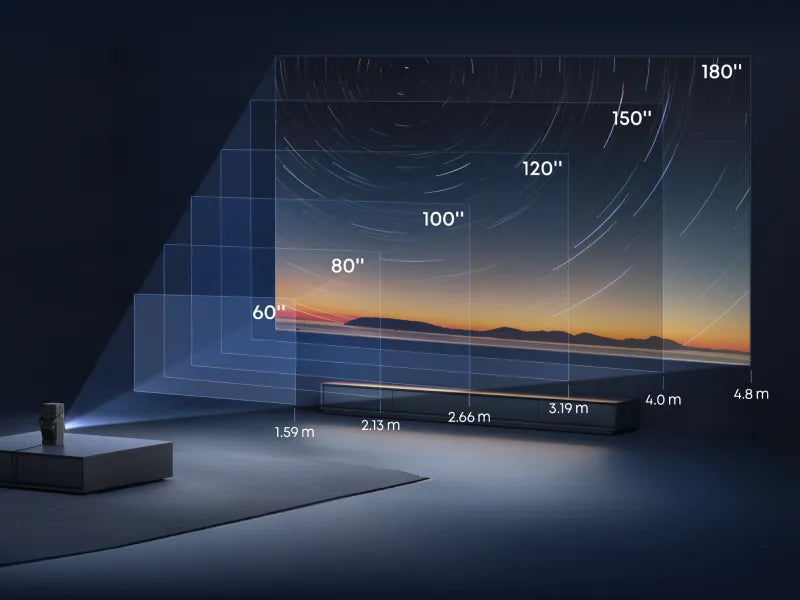 約4.8メートルで最大180インチまで投影が可能。