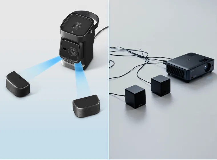 本体から取り外し、投影面の近くに配置するだけで、簡単に臨場感あふれる音場を再現できます。