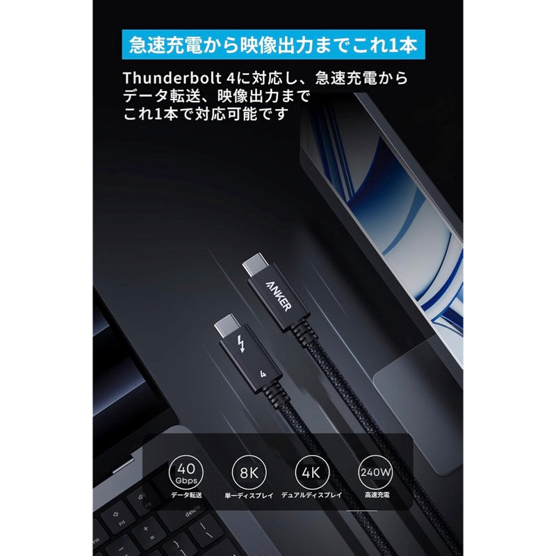 Anker Prime USB-C & USB-C ケーブル Thunderbolt 4 (240W, 40Gbps) 1.0m