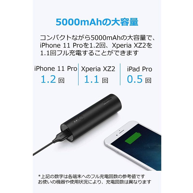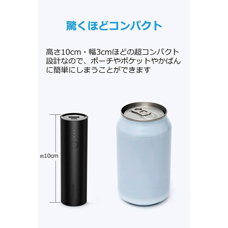大型のスマートフォンであっても1回以上、ほぼすべてのスマートフォンに約2回の充電が可能です。職場、旅行、家で少し使いたいときに非常に便利です。驚きのコンパクトサイズ
