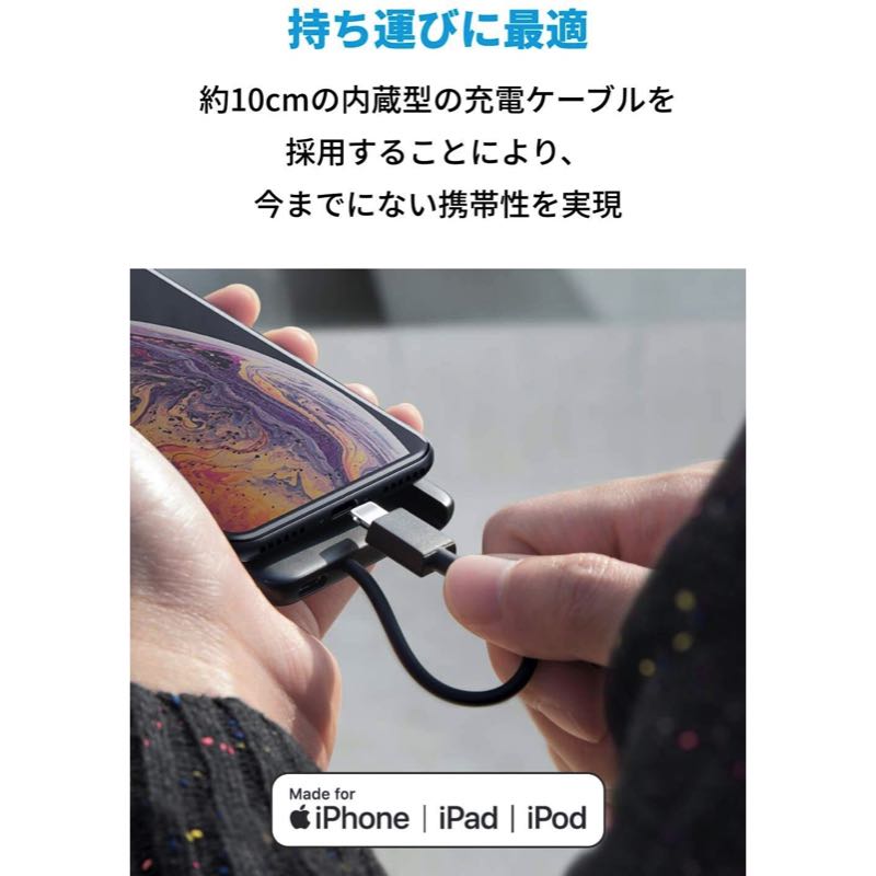 Anker PowerCore 5000 Built-in Lightning Cableは、約10cmの内蔵型の充電ケーブルを採用することにより、今までにない携帯性を実現しました。製品仕様