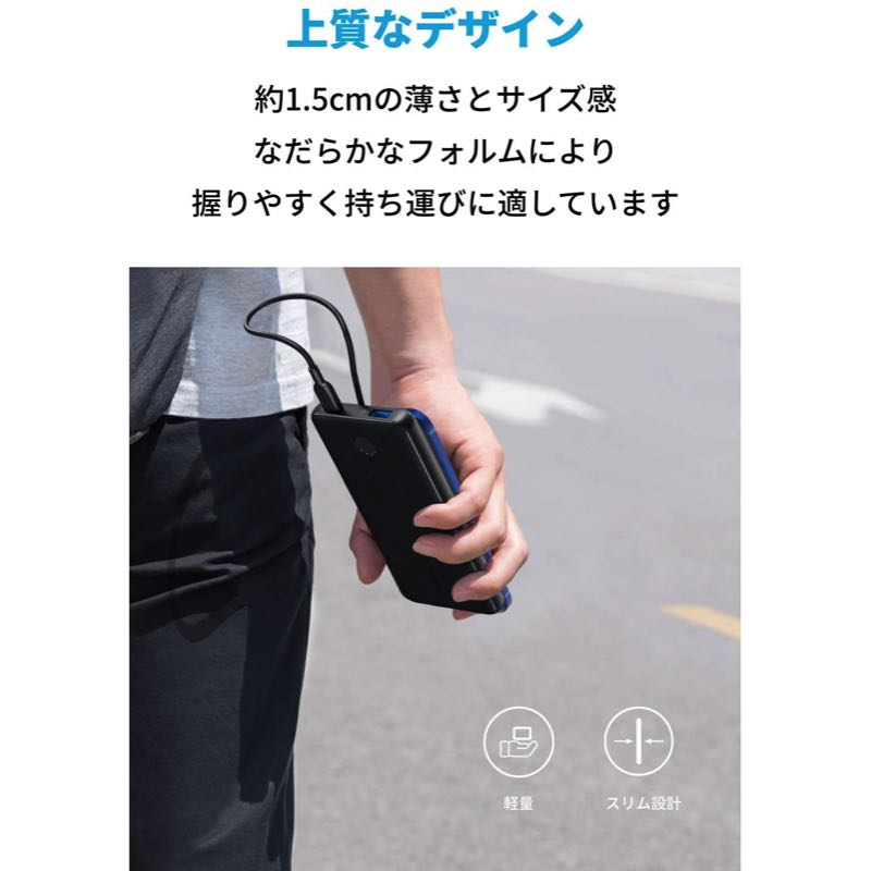 モバイル充電器としての機能は今のところ申し分ないと思います。Ankerのずんぐりした旧型からの買い替えですが、とても薄くかさばらない点が大変素晴らしい。