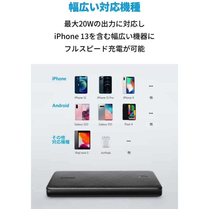 前モデルのAnker PowerCore Slim 10000 PDが最大20W出力にアップグレード。iPhone 13シリーズを最速で充電可能です。一般的な5W出力の充電器に比べ、最大3倍速く充電できます。(※iPhone 13を0%から30分充電した場合との比較)安心の大容量