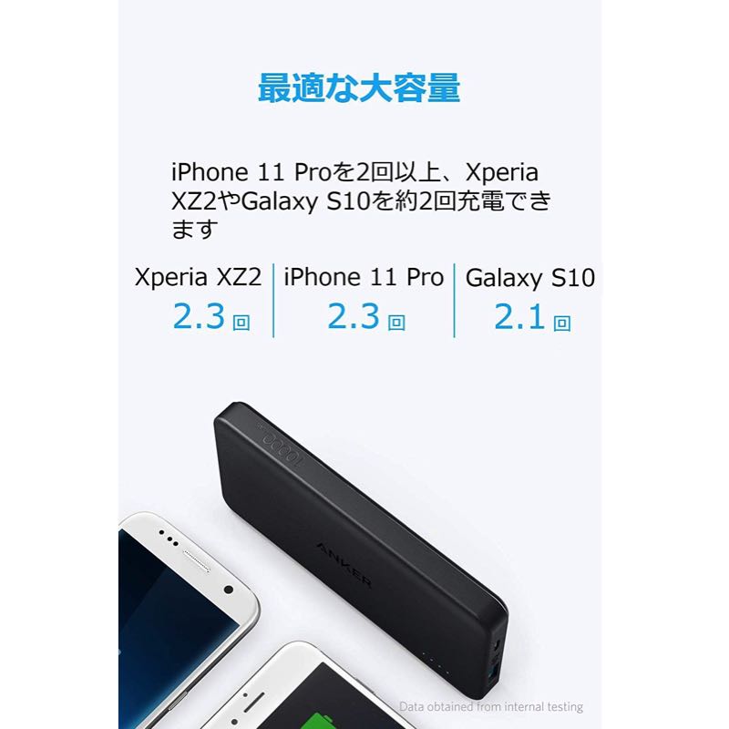 iPhone XSを始め、最新のスマートフォンやタブレット端末、その他のUSB機器を2回以上フル充電することが可能です。いつでも充電でき、もうコンセントに縛られることはありません。その価値は充電だけじゃない