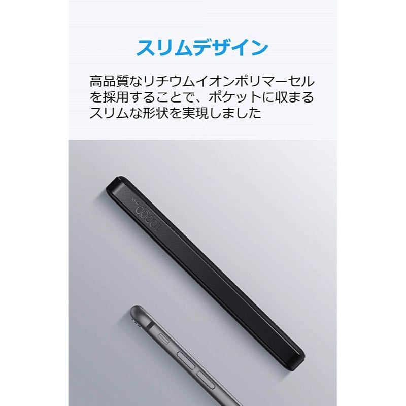 | パッケージ内容 | Anker PowerCore II Slim 10000、Micro USBケーブル(60cm)、トラベルポーチ、取扱説明書、18ヶ月保証 + 6ヶ月 (Ankerで会員登録後)、カスタマーサポート |