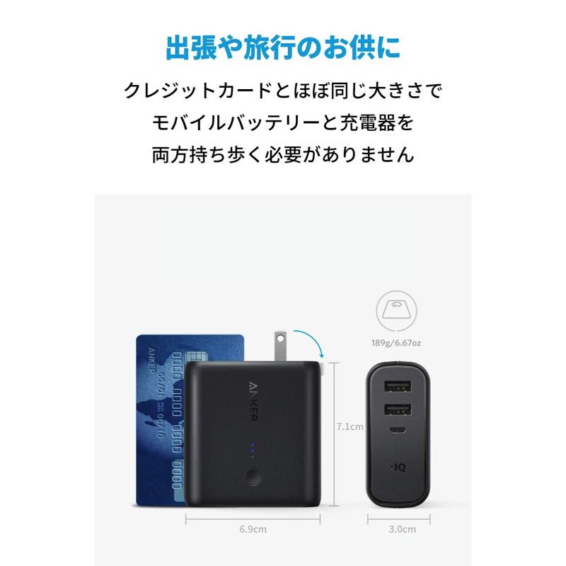 旅行や出張の時に余分な充電器やケーブルを持ち歩く必要はありません。必要なのではAnker PowerCore Fusionとお使いの機器用の充電ケーブルだけです。