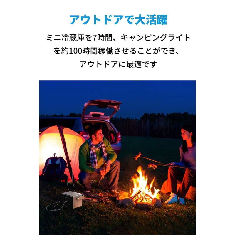 ミニ冷蔵庫を約7時間、キャンピングライトを約100時間稼働させることができ、キャンプ、車中泊、アウトドアなどにも最適です。安定したAC出力