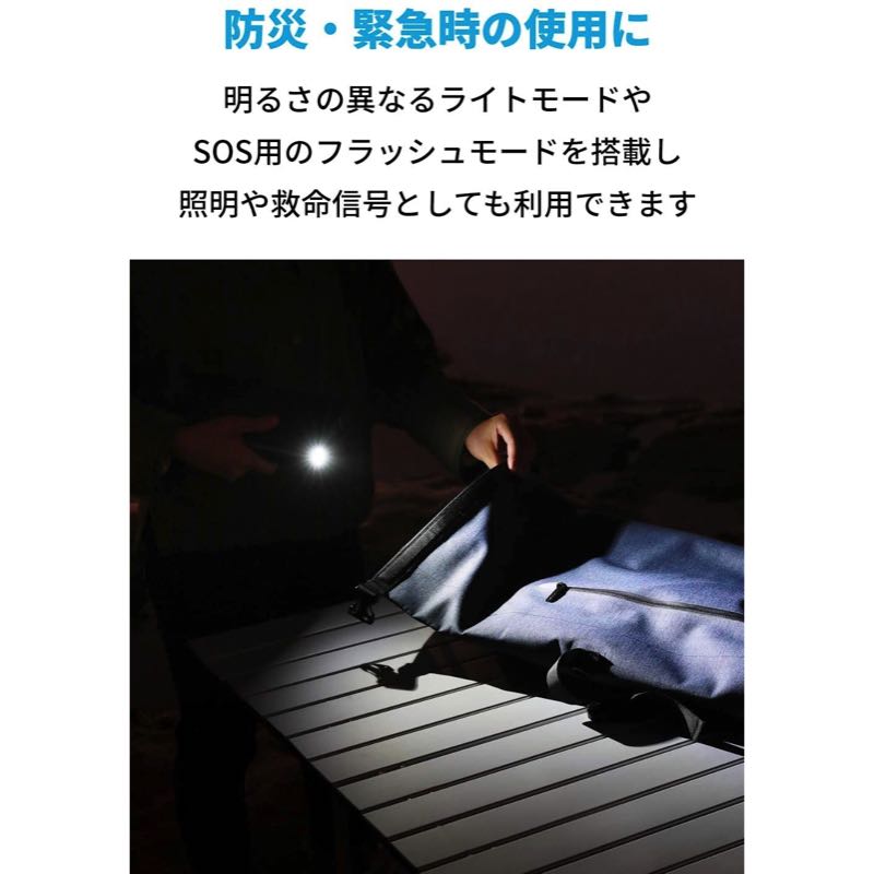 地震・津波など自然災害、急な停電時の防災グッズとしておすすめです。明るさの異なるライトモードやSOS用のフラッシュモードを搭載し照明や救命信号として利用できます。本体へもフルスピード充電