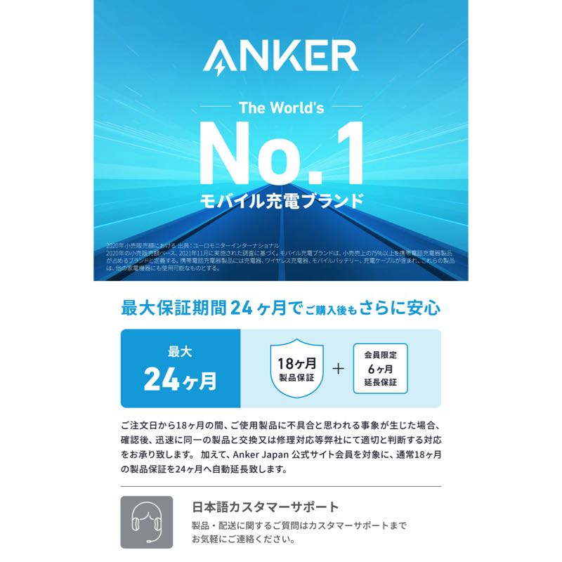 ※Anker Japan 公式オンラインストア会員を対象に、通常18ヶ月の製品保証を5年へ自動延長致します。-