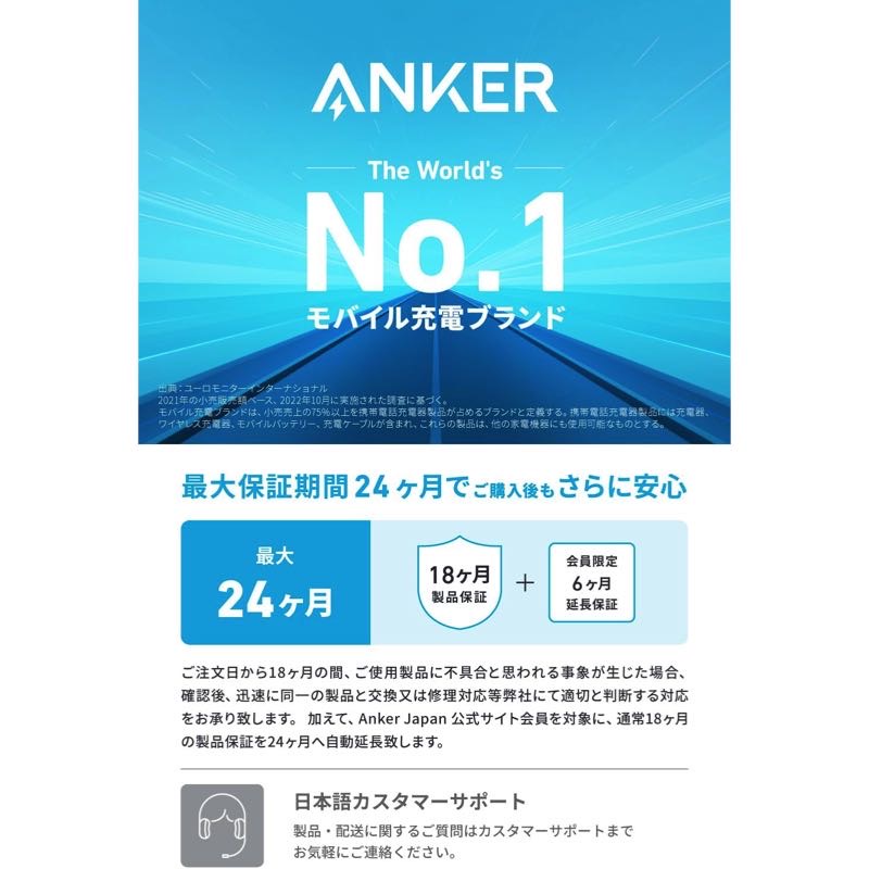 ※Anker Japan 公式オンラインストア会員を対象に、通常18ヶ月の製品保証を5年へ自動延長致します。純正スペアバッテリー