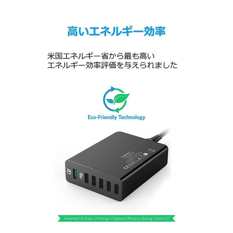 Anker独自の充電技術PowerIQとVoltageBoostを5ポートに搭載。Quick Charge非対応機器にもフルスピード充電が可能です(1ポート最大2.4A)。洗練されたデザイン