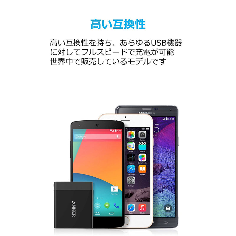 ・本製品は、iPhone、Androidスマートフォン、 iPad 、タブレット (Nexus を含む) 、MacBook、その他USB機器と互換性があります(iPod nano、iPod Classic、iPod Shuffle、HP TouchPad、Dell Venue 11 Pro、ASUS社製タブレットを除く)。