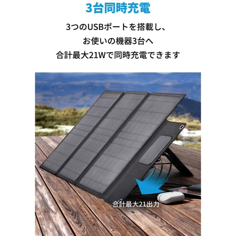 ・ソーラーエネルギーから電気への変換ロスによりUSB出力は24Wより小さくなります。