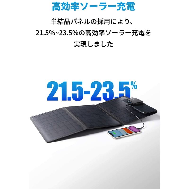 単結晶パネルの採用により、21.5%~23.5%の高効率ソーラー充電を実現しました。