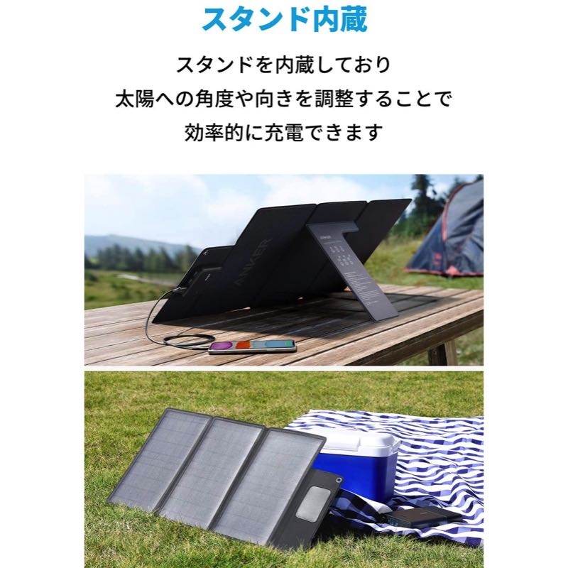 スタンドを内蔵しており、太陽への角度や向きを調整することで効率的に充電することができます。