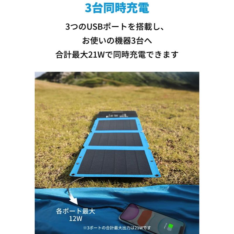 | パッケージ内容 | Anker PowerSolar Flex 3-Port 24W、取扱説明書、18ヶ月保証 + 6ヶ月 (Ankerで会員登録後)、カスタマーサポート |