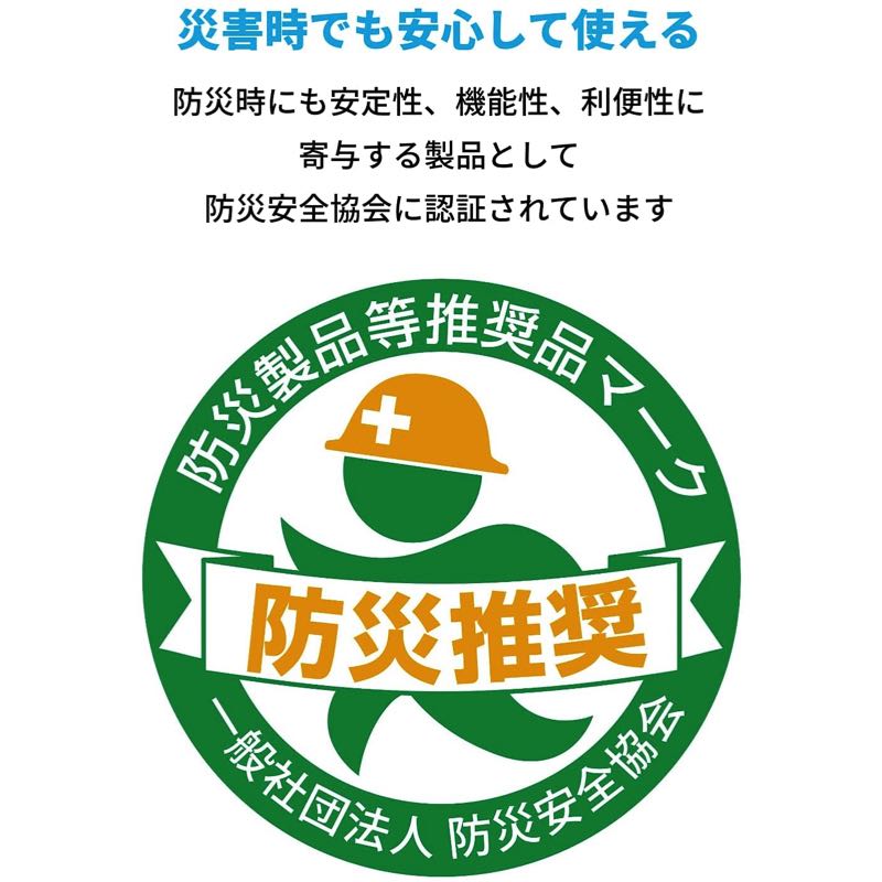 本製品は一般社団法人防災安全協会により、防災分野において有益な活用が可能で安全性、機能性、利便性に寄与する製品として認証されています。