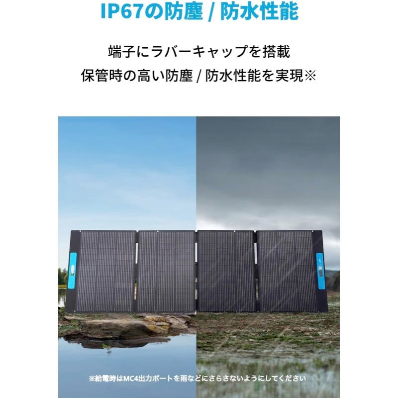 Anker C1000 / C800 / F3800 / F1500 / 757 / 767 (別売り) の充電用ソーラーパネルです。アウトドアシーンや災害時など電源を確保しづらい場面でも安心です。最大400Wの高出力