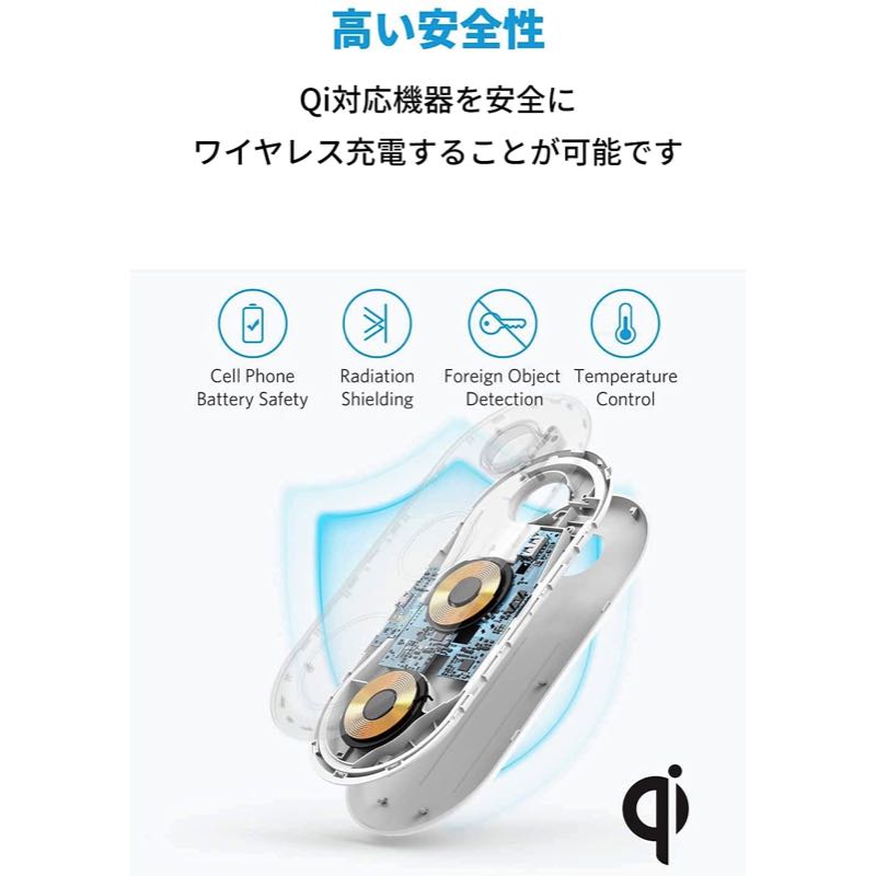 Anker独自の多重保護システムによる異物検知などの優れた保護機能を搭載し、Qi対応機種を安全にワイヤレス充電することが可能です。最適な急速充電器で