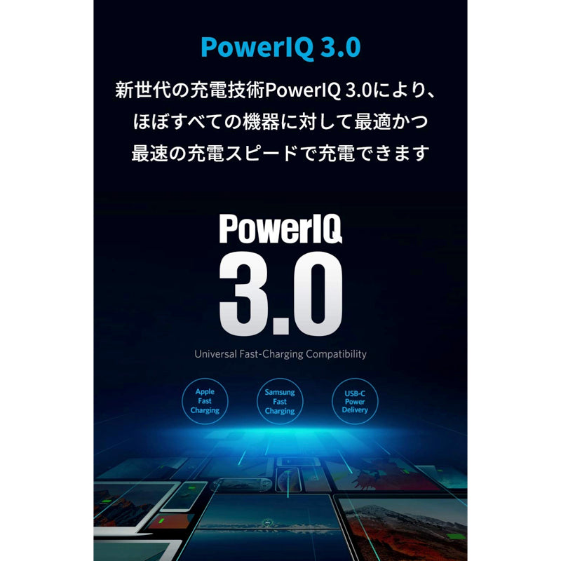 Ankerの独自技術PowerIQがさらに進化。USB Power DeliveryやQualcomm Quick Chargeなどと互換性のある新世代の充電技術PowerIQ 3.0により、ほぼすべての機器に対して最適かつ最速の充電スピードを実現しました。お使いのスマートフォン、タブレット端末、ノートPCなどほとんどの機器にフルスピード充電が可能です。驚くほどのコンパクトサイズ