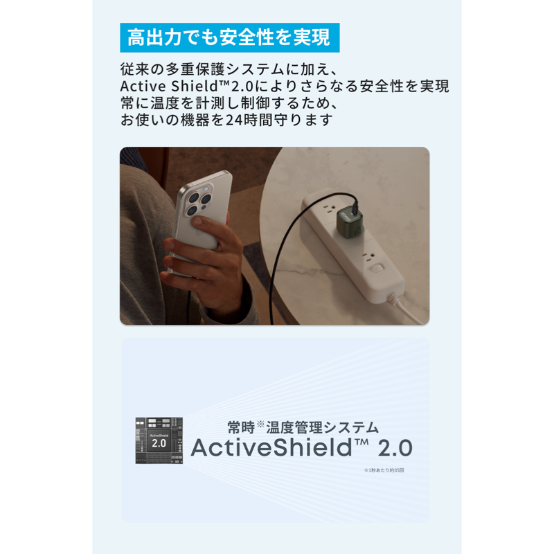 従来の多重保護システムに加え、Active Shield️2.0によりさらなる安全性を実現。常に温度を計測し制御するため、お使いの機器を24時間守ります。