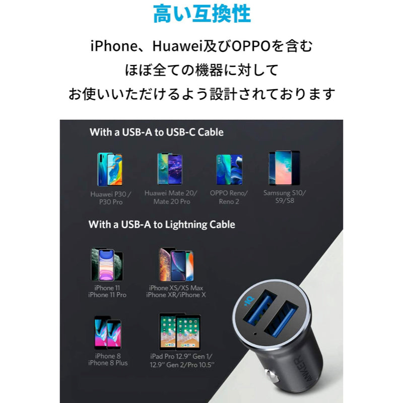 | ご注意 | ・Anker PowerDrive 2 Alloyは、シガーソケットに収まるように設計されていますが、車種によっては、はみ出してしまう場合があります。 |