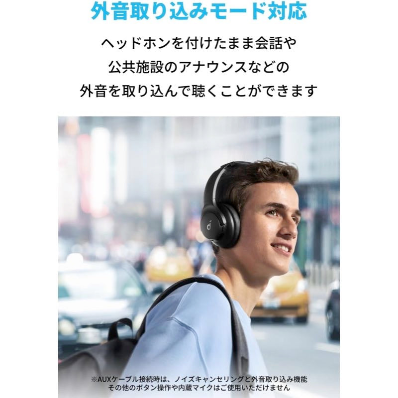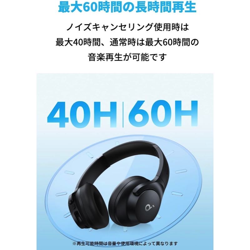 | パッケージ内容 | Soundcore Q20i、USB-C & USB-A ケーブル、3.5mm AUXケーブル、クイックスタートガイド、安全マニュアル、18ヶ月保証 + 6ヶ月 (Ankerで会員登録後) 、カスタマーサポート |