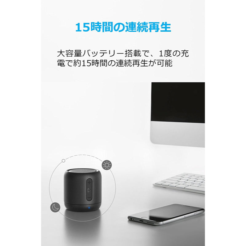 パッケージ内容 Anker SoundCore mini、Micro USBケーブル、取扱説明書、18ヶ月保証 + 6ヶ月 (Ankerで会員登録後) 、カスタマーサポート