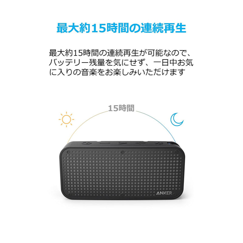 | パッケージ内容 | Anker SoundCore Sport XL、Micro USBケーブル、ハンドストラップ、取扱説明書、18ヶ月保証 + 6ヶ月 (Ankerで会員登録後)、カスタマーサービス |