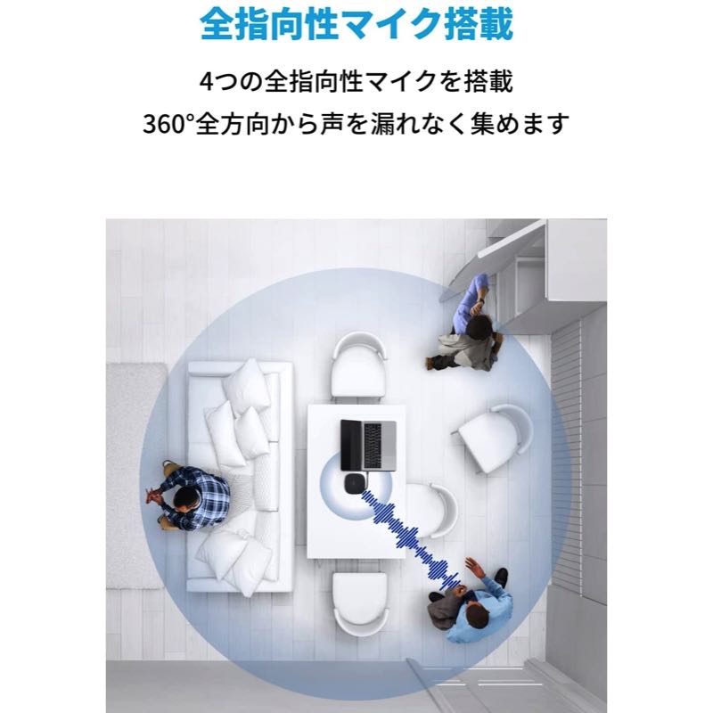 4つの全指向性マイクを搭載し、360°全方向から声を漏れなく集めます。高い利便性