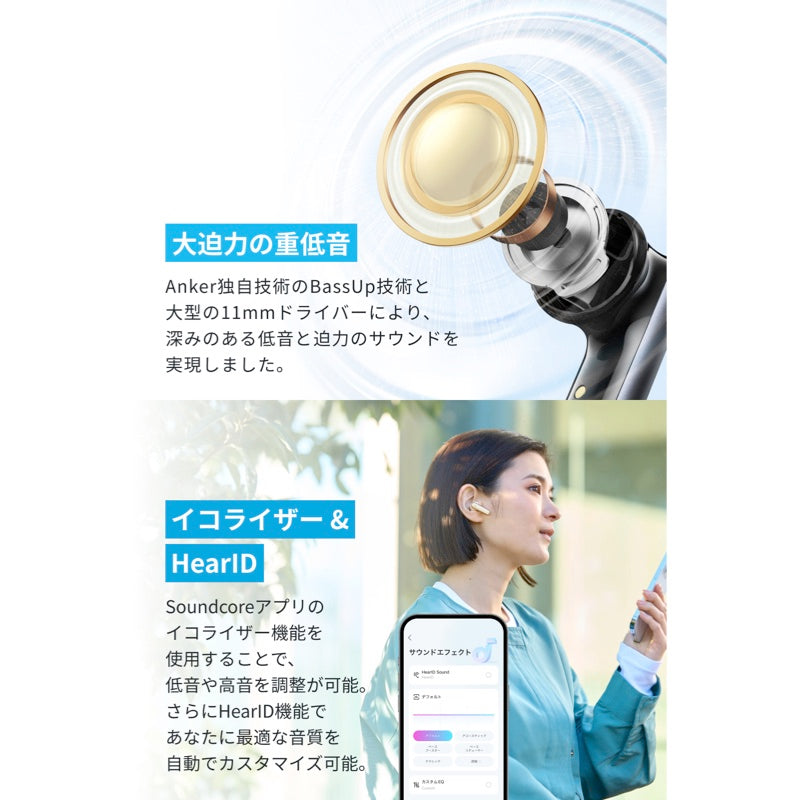 Anker独自技術のBassUp技術と大型の11mmドライバーにより、深みのある低音と迫力のサウンドを実現しました。