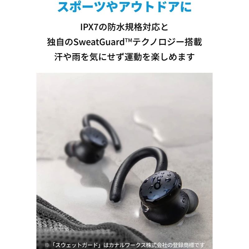 IPX7の防水規格対応とAnker独自のSweatGuard™テクノロジーにより、雨や運動時の汗などを気にせず安心してスポーツやアウトドアなどのシーンをお楽しみいただけます。