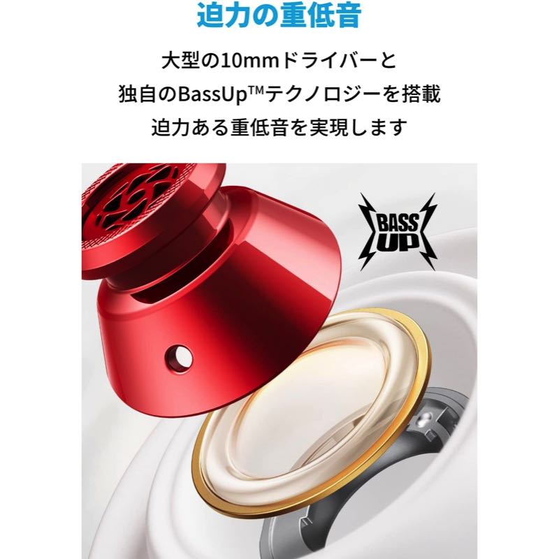 大型の10mmドライバーとAnker独自のBassUpテクノロジーを搭載。パワフルな重低音で音楽をお楽しみいただけます。