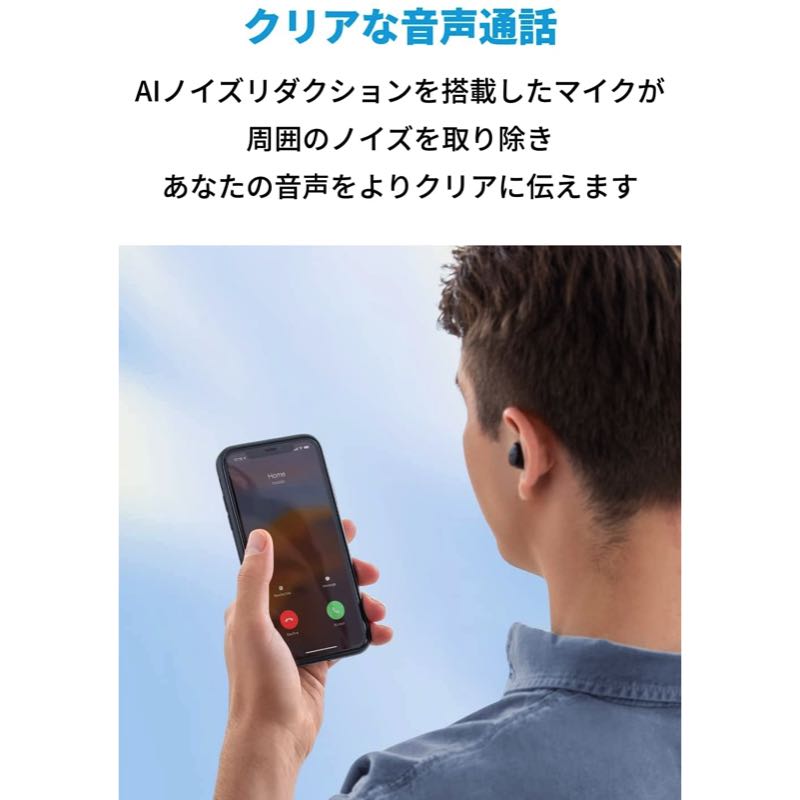 AIノイズリダクション機能を搭載した4つ (左右のイヤホンに各2つ) のマイクが周囲の雑音を除去し、通話相手にあなたの音声をより大きくクリアに伝えます。テレワークやWEB会議にもおすすめです。外音取り込みモード
