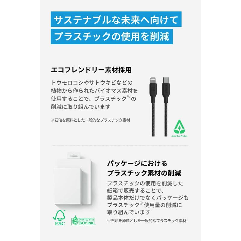 Anker 541 エコフレンドリーナイロン USB-C & ライトニング ケーブル 0.9m