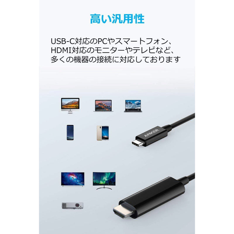 | パッケージ内容 | Anker USB-C to HDMI ケーブル(1.8m)、取扱説明書、18ヶ月保証 + 6ヶ月 (Ankerで会員登録後)、カスタマーサービス |