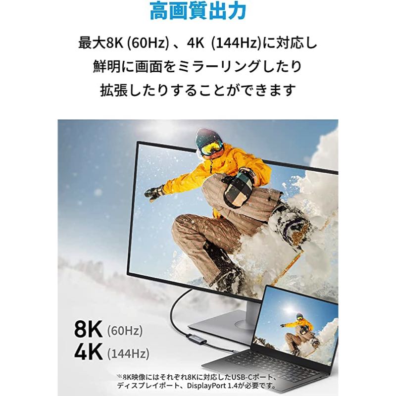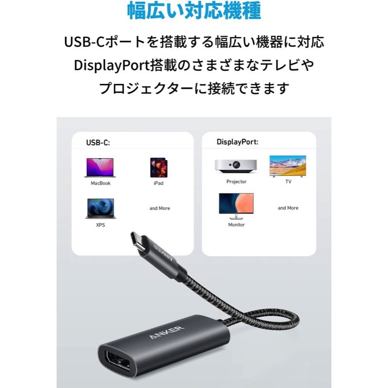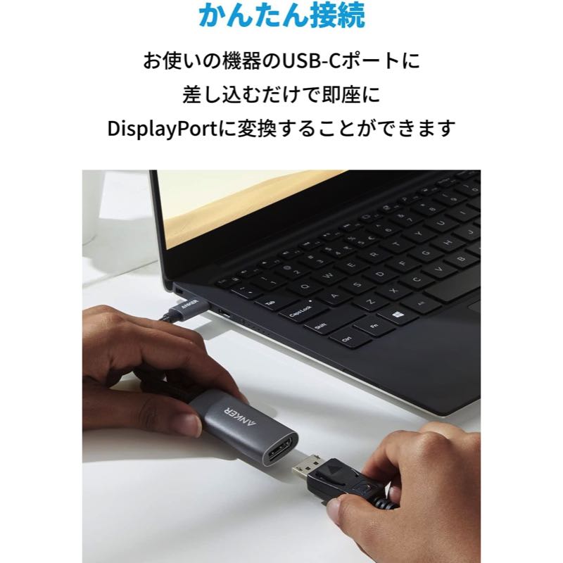お使いの機器のUSB-Cポートに差し込むだけで、即座にDisplayPortに接続することができます。製品仕様