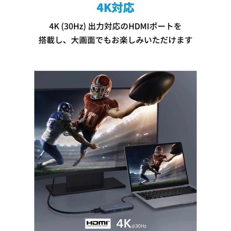 4K (30Hz) 出力対応のHDMIポートを搭載し、大画面でも高画質なコンテンツをお楽しみいただけます。