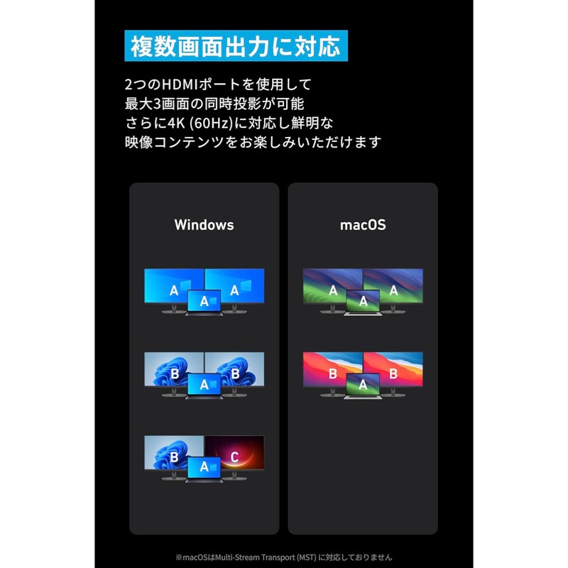 ・macOSはMulti-Stream Transport (MST) に対応しておりません。