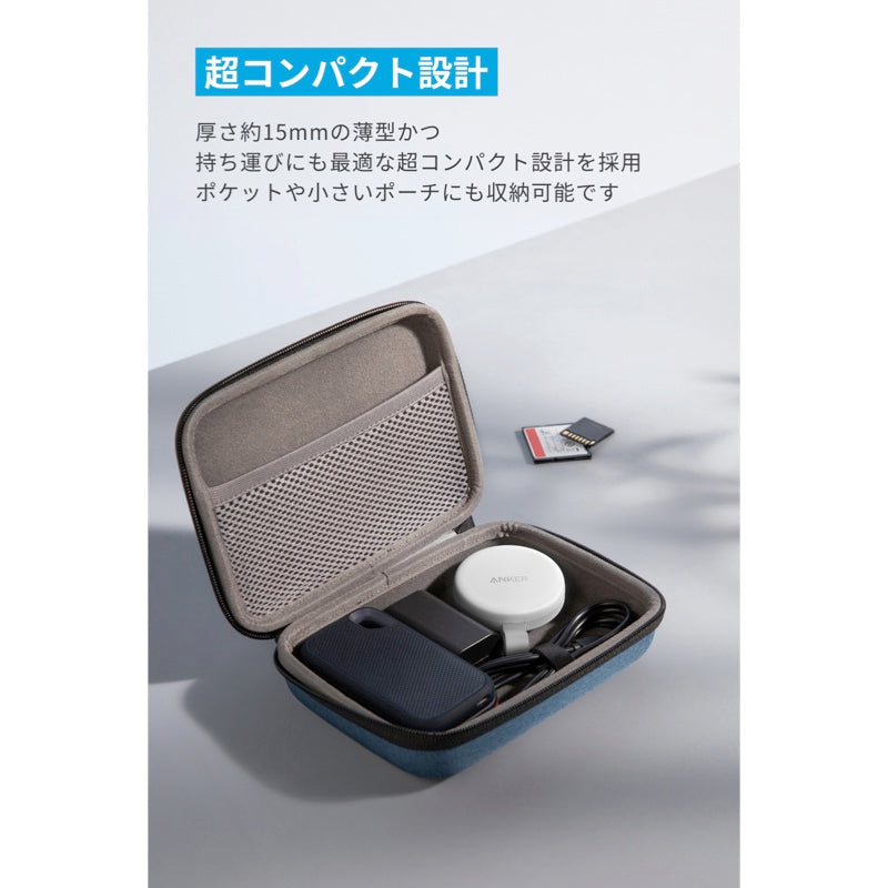 厚さ約15mmの薄型かつ持ち運びにも最適な超コンパクト設計を採用。ポケットや小さいポーチにも収納可能です。