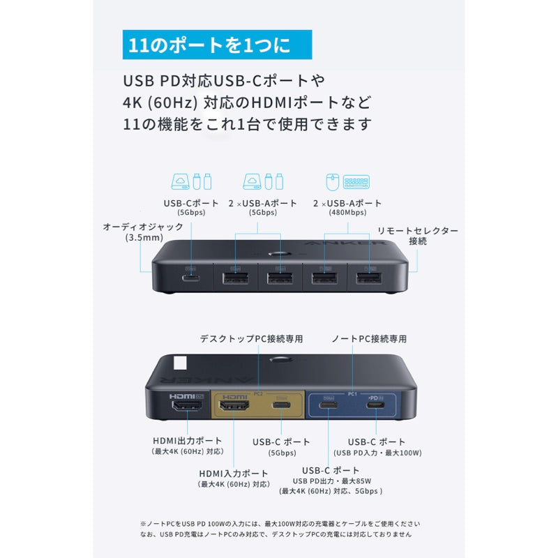 Anker KVM Switch (4K, For デスクトップPC & ノートPC )